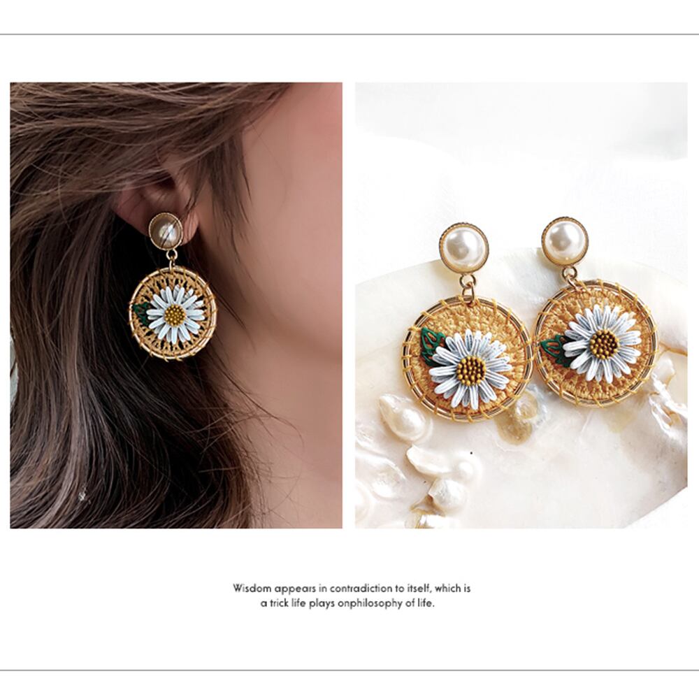 大振りの花モチーフに編み上げサークルとパールを合わせたスタッドピアス