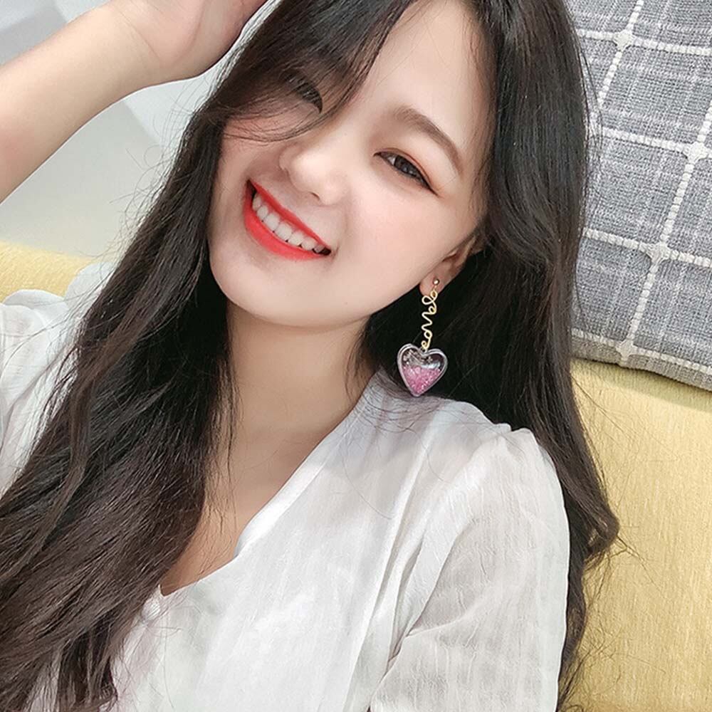 大ぶりなデザインで小顔効果抜群の可愛いハート型のアシンメトリーピアス