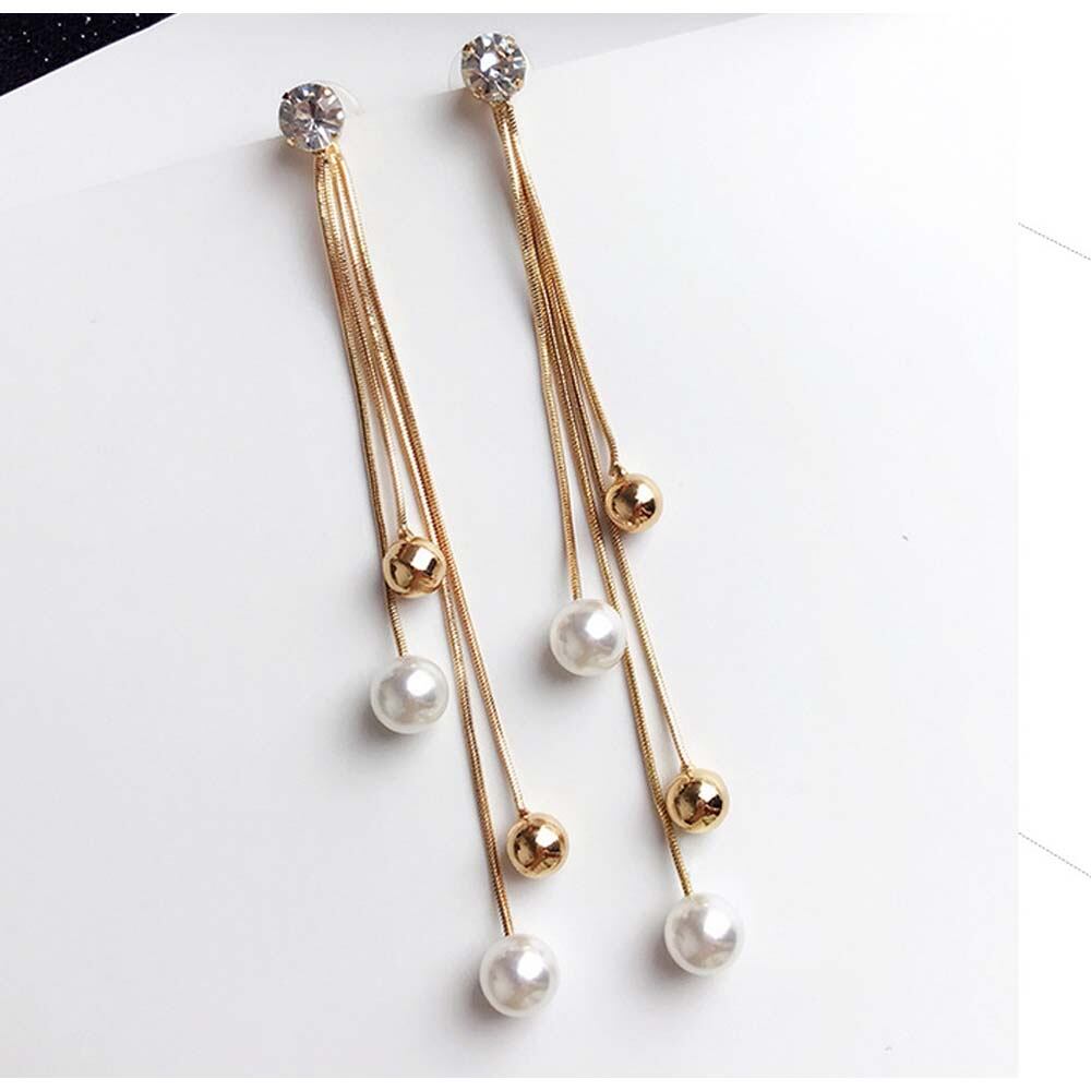 フェイクパールと合金ボールモチーフの4連ロングチェーンピアス