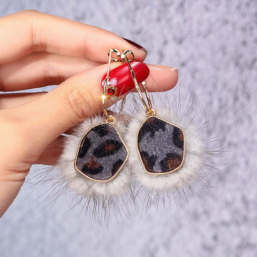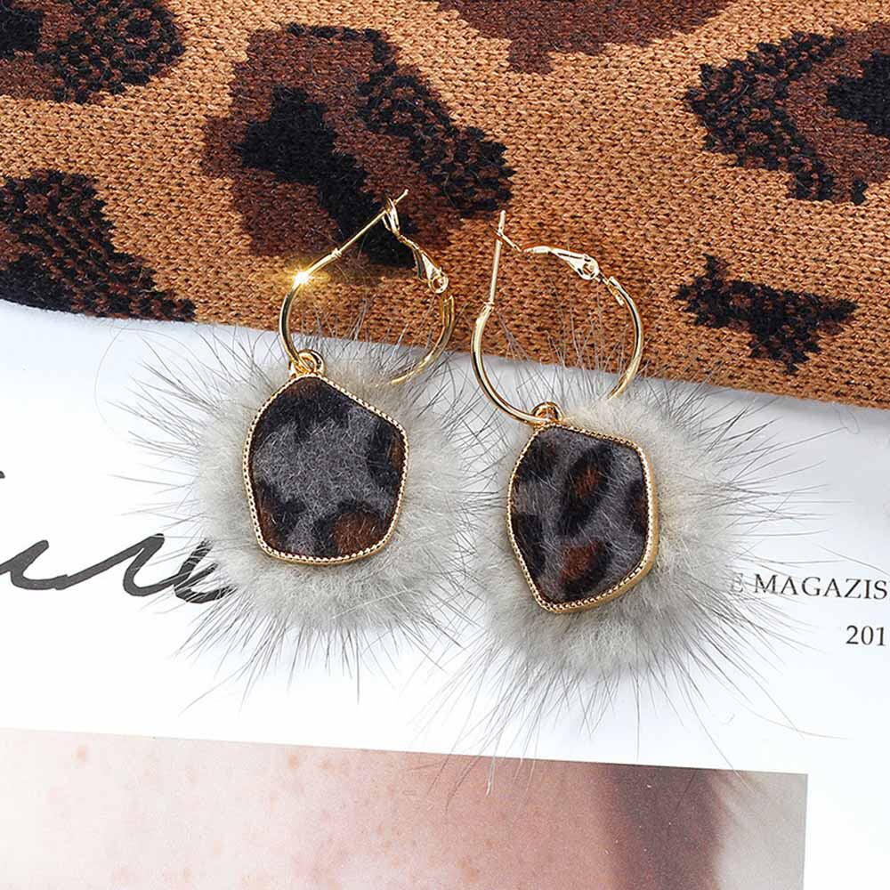 フープピアス 大ぶりピアス レディース ヒョウ柄 ピアス ミンクファーピアス