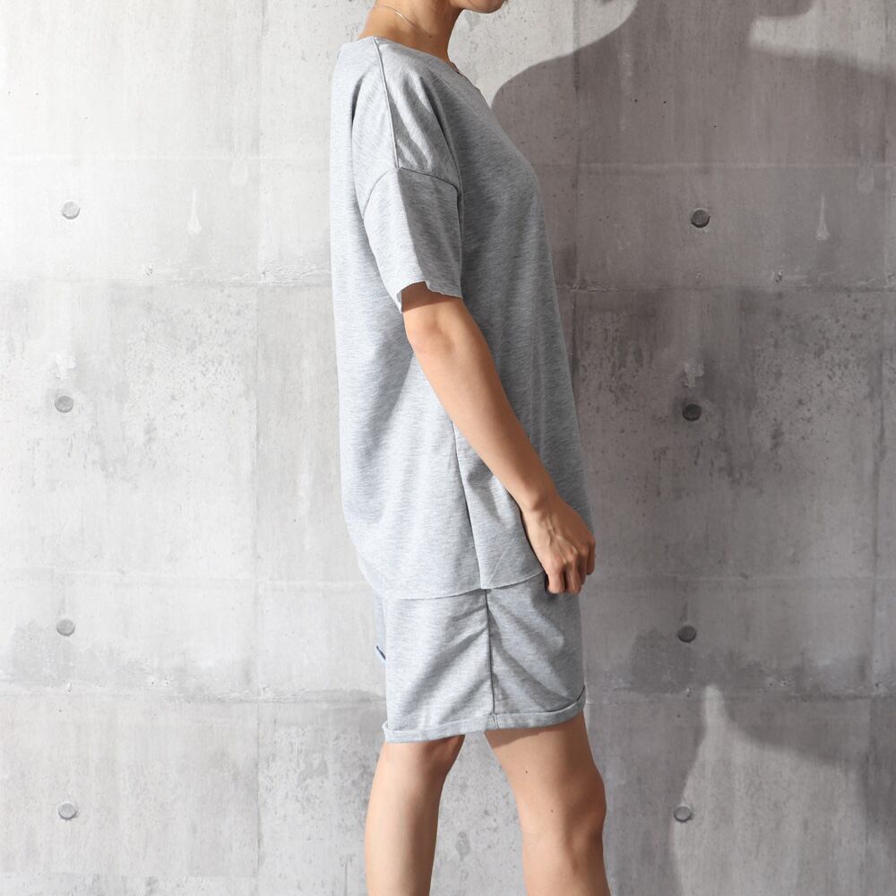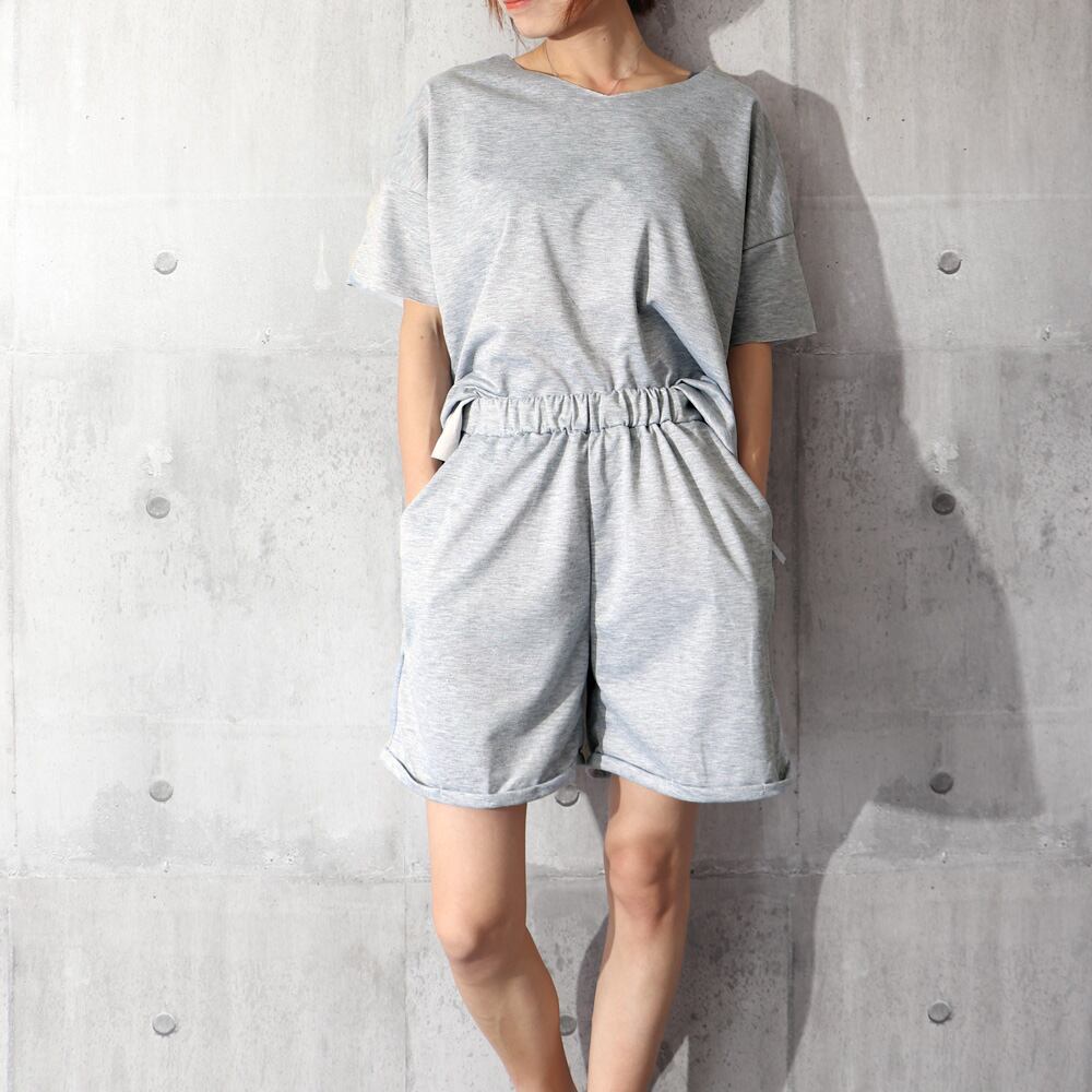 トップスは切りっぱなしとショートパンツはロールアップのルームウェアセット