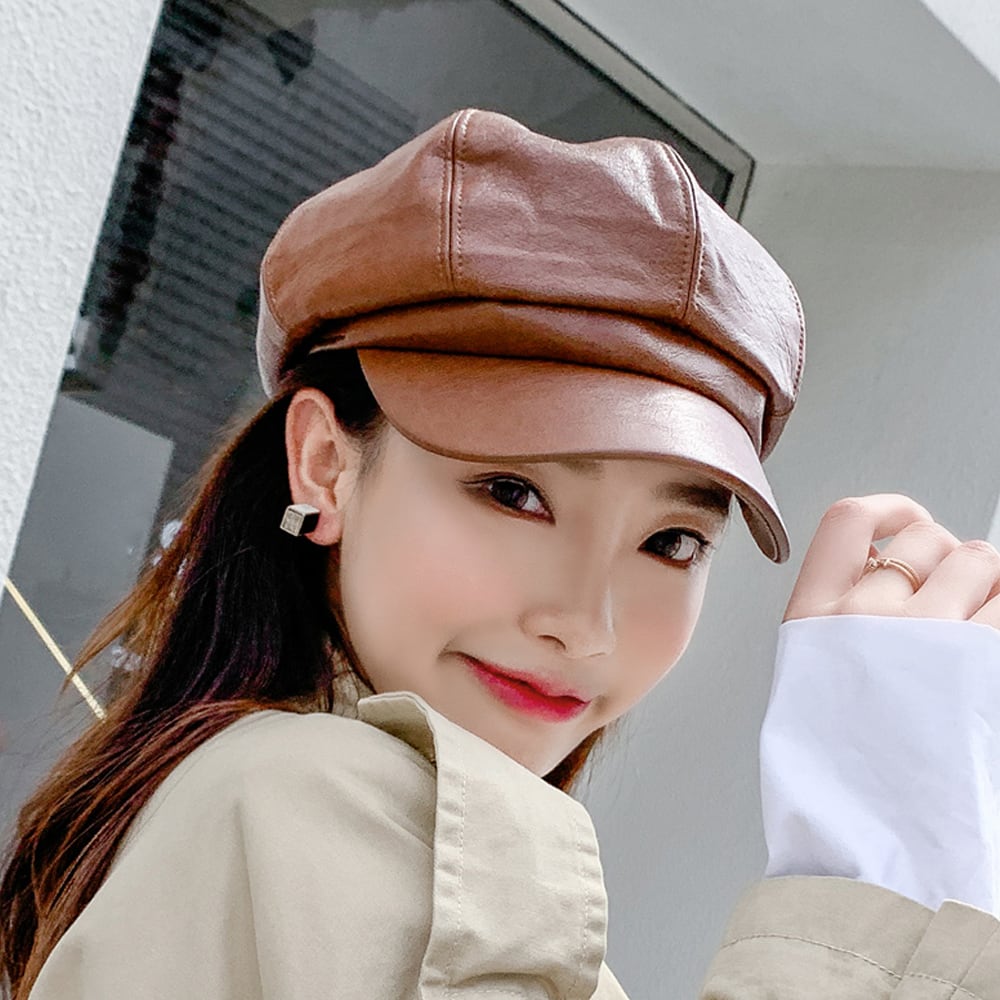 キャスケット 帽子 レディース 人気 フェイクレザー キャスケット 合皮