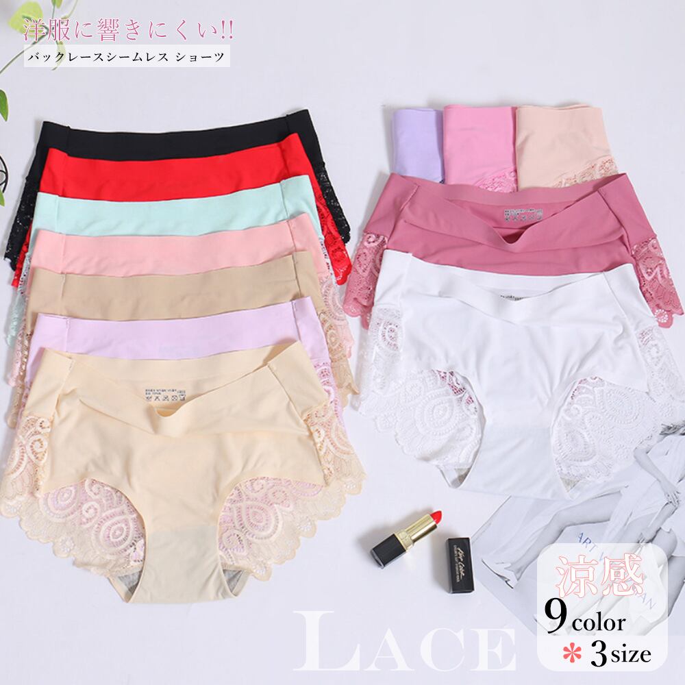 響かない ショーツ レディース バックレース シームレス ショーツ 涼感 冷感