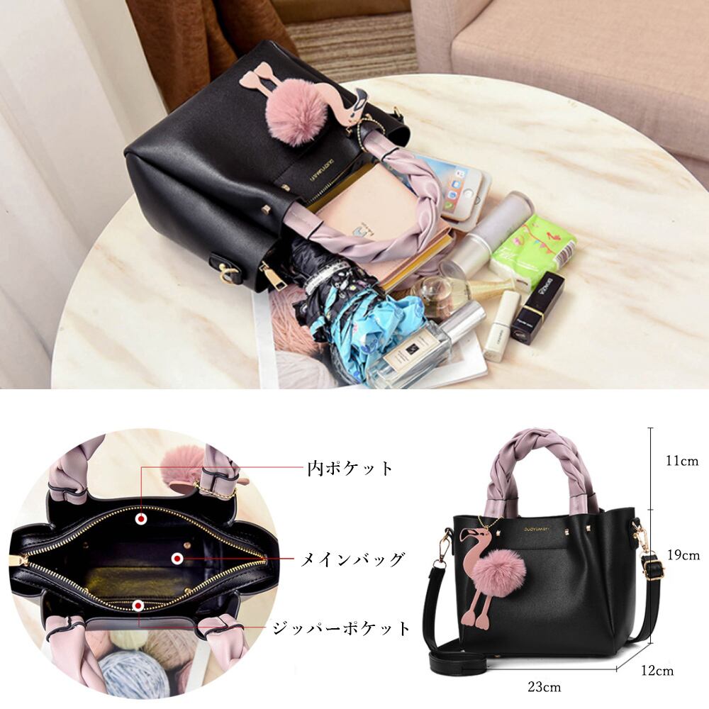 コーデのアクセントに活躍するフラミンゴチャーム付き2wayショルダーバッグ