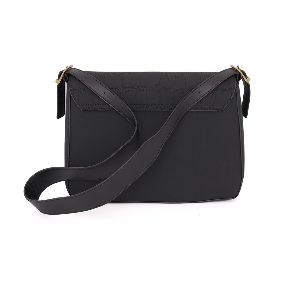 開口部のベルトがアクセントになった、ミニマルデザインのスタイリッシュなショルダーバッグです