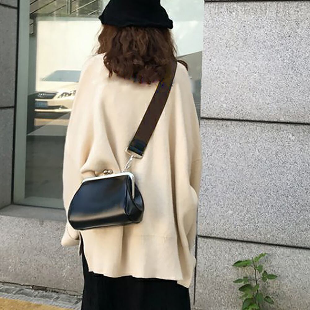 ショルダーバッグ PU レザー がま口 押し口 肩掛け 大人 オルチャン お洒落