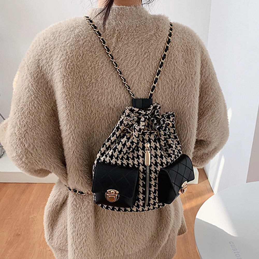 ミニリュック カジュアル ポケット レディース 可愛い 小さめ ミニ 肩掛け オシャレ バックパック 千鳥柄 小ぶり