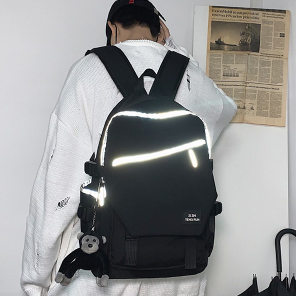 リュックサック チャーム付き 大容量 バックパック ユニセックス 反射材