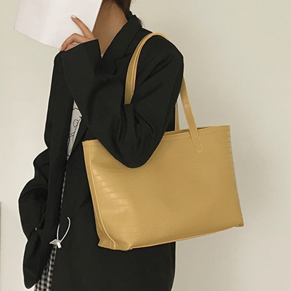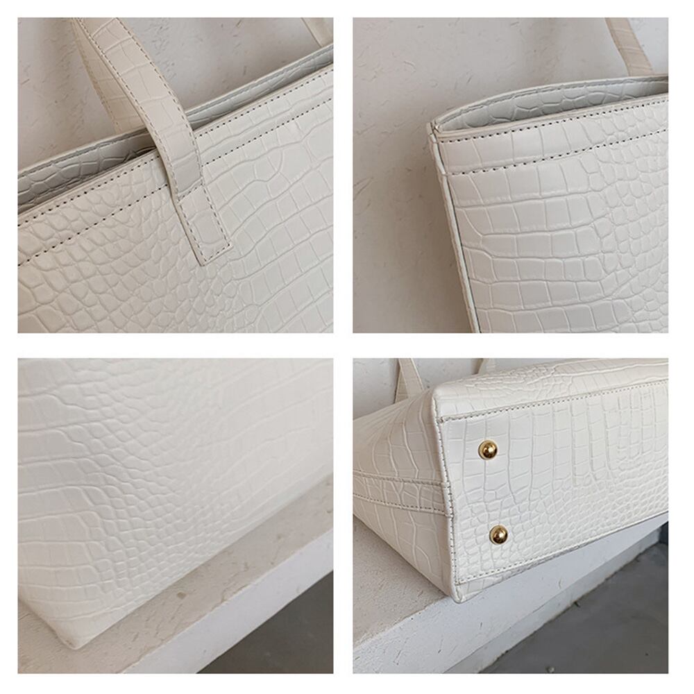 クロコダイル型押しフェイクレザートートバッグとポーチの2点セット