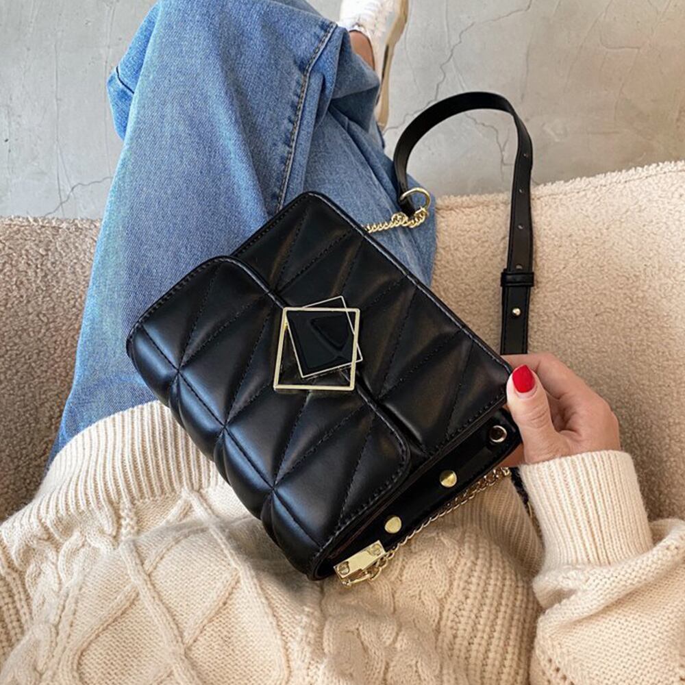 クラシックなデザイン、スクエア型のショルダーバッグです。