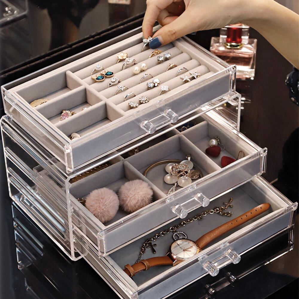 クリアタイプの引き出し式アクセサリー収納ケース。