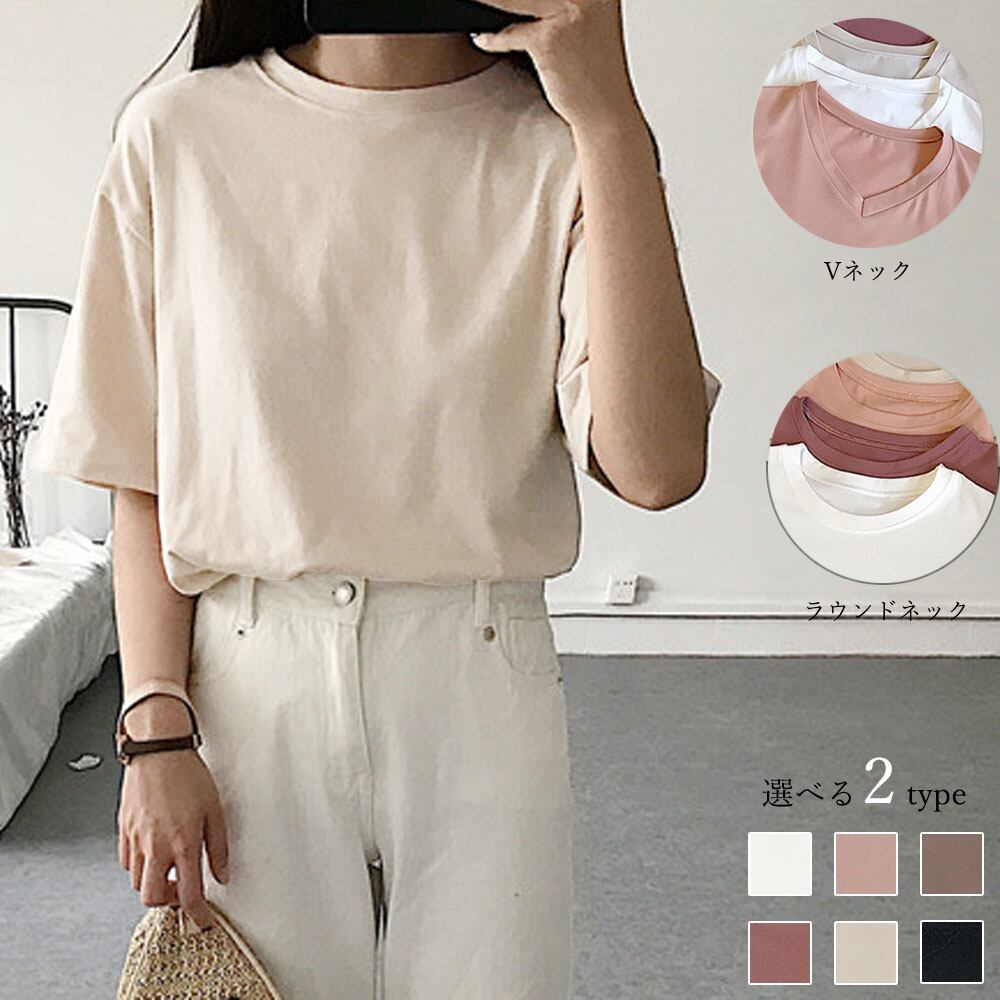 Tシャツ レディース 半袖 カジュアル 無地 くすみ ラウンドネック