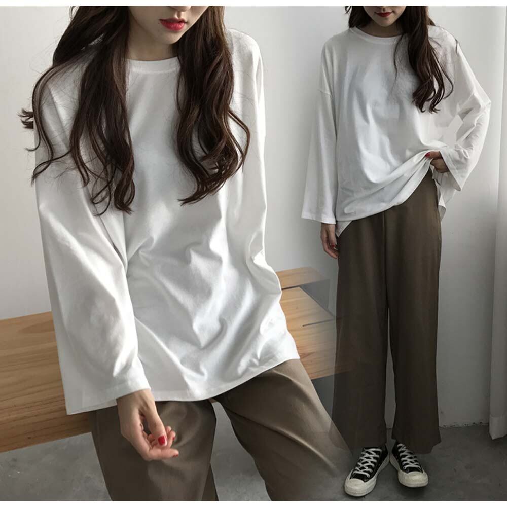 Tシャツ レディース 長袖 ゆったり トップス 春夏 クルーネック カットソー
