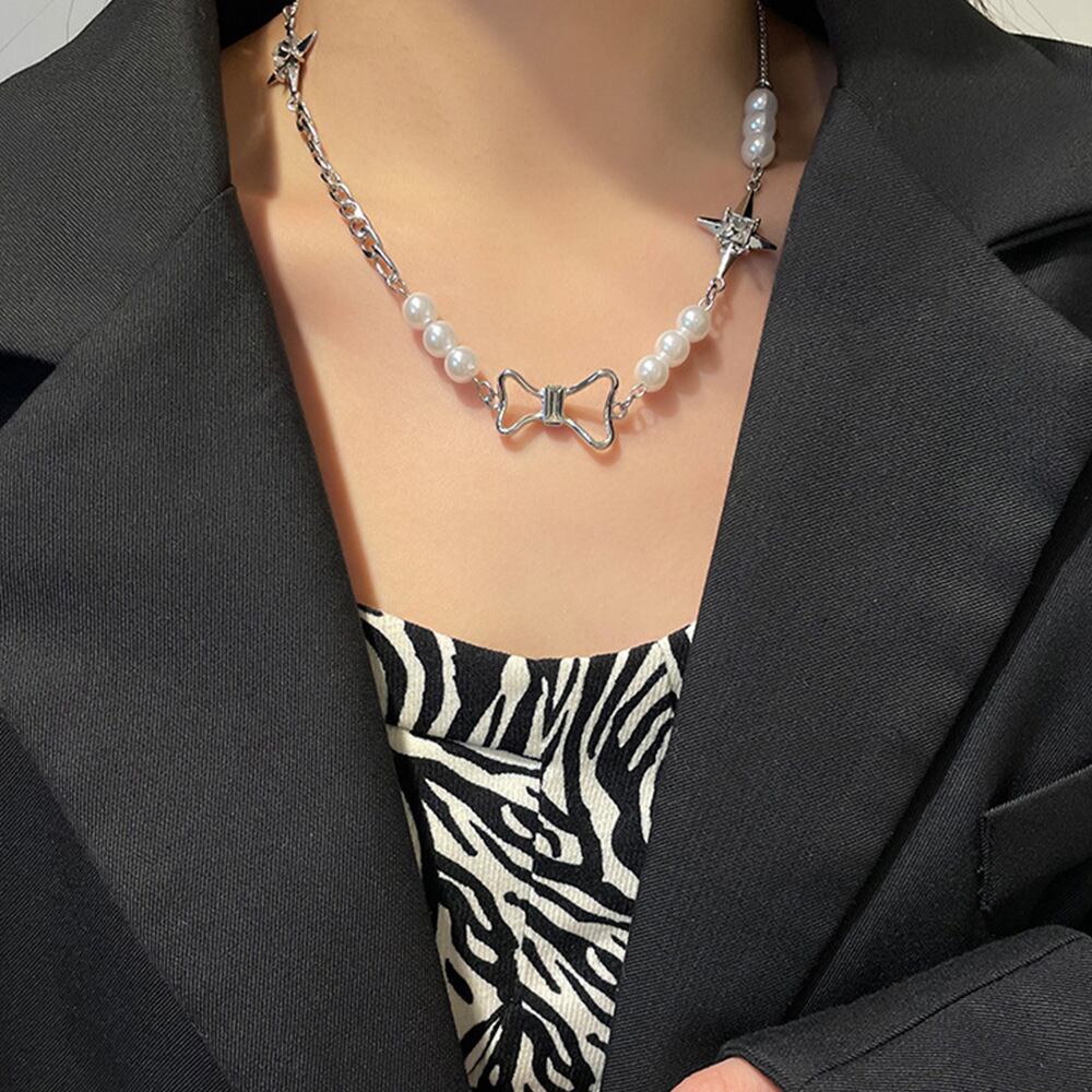 星モチーフ チェーンネックレス フェイクパール キラキラ 切り替え アクセサリー 首飾り ジュエリー 韓流 可愛い