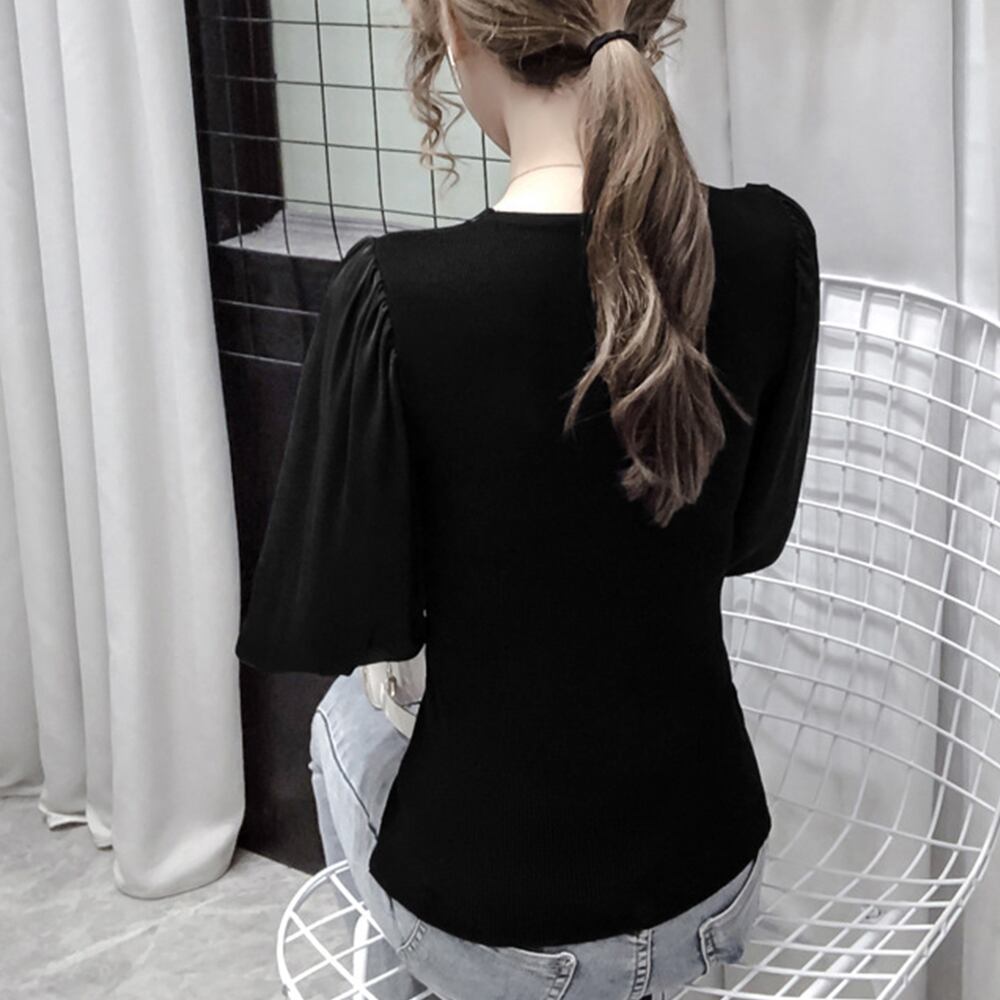 レディース カシュクール ニットセーター パフスリーブ ニットソー Vネック ニットウェア
