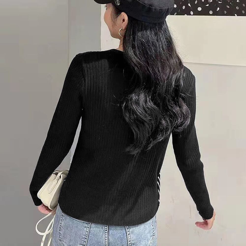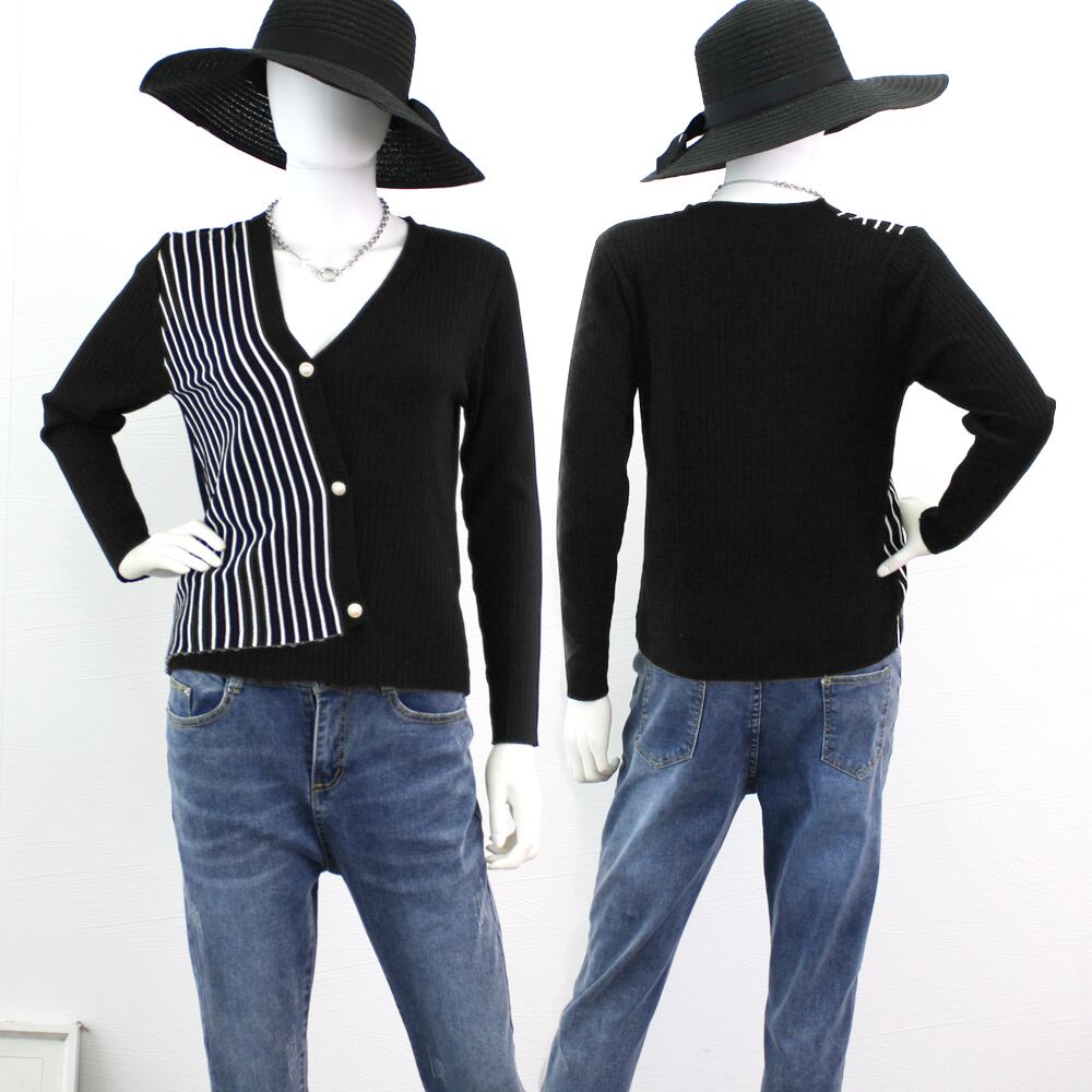 春秋冬 長袖ニット ストライプ柄 編み フェミニン 配色