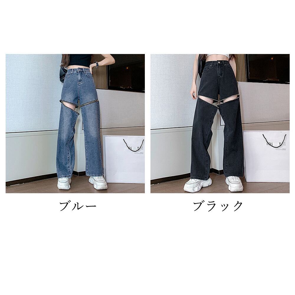 ワイドパンツ ハイウエスト 2WAY ジッパー 脚長 美脚 ゆったり 着やせ おしゃれ オルチャン