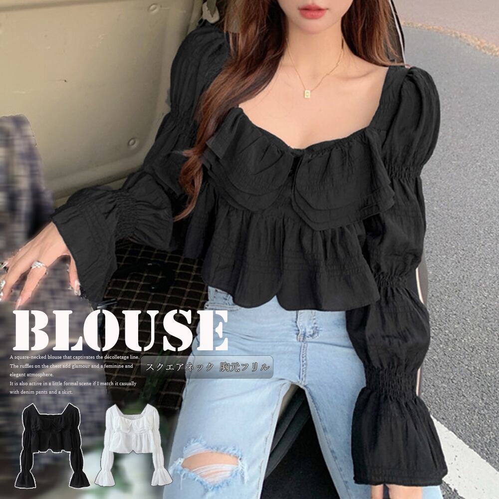 ブラウス スクエアネック 胸元フリル