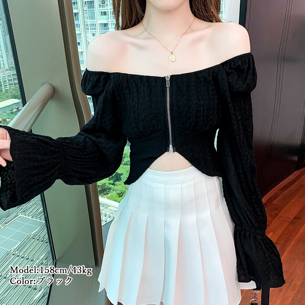 肩見せ ブラウス ジッパー トップス ショート丈 シャツ