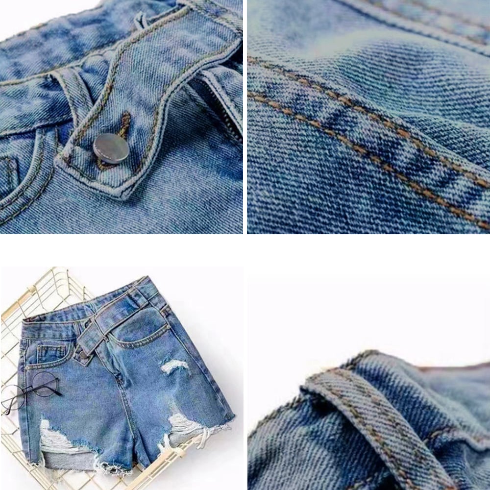 ダメージジーンズ ハイウエスト ホットパンツ カットオフ ボトムス 無地 ワイドパンツ