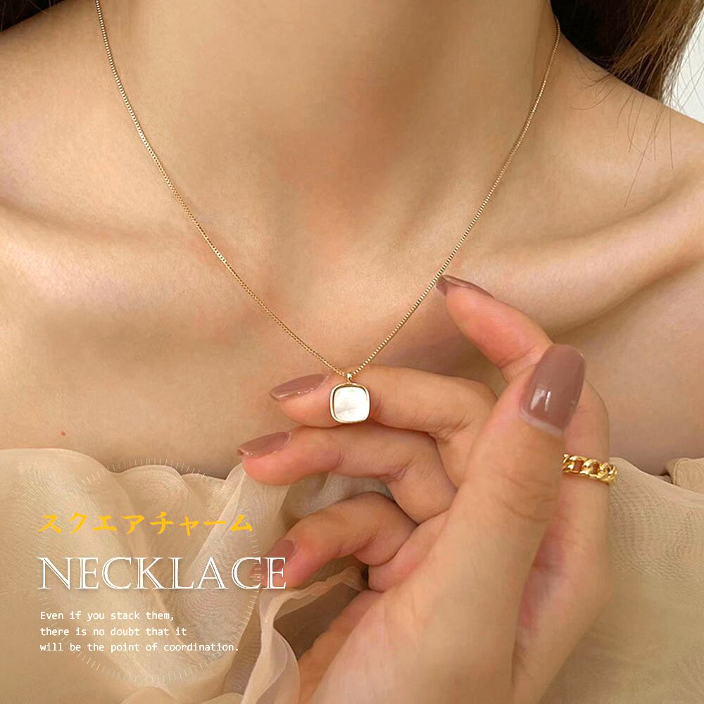 デイリーにつけられるかわいいシェルモチーフのスクエアネックレス。