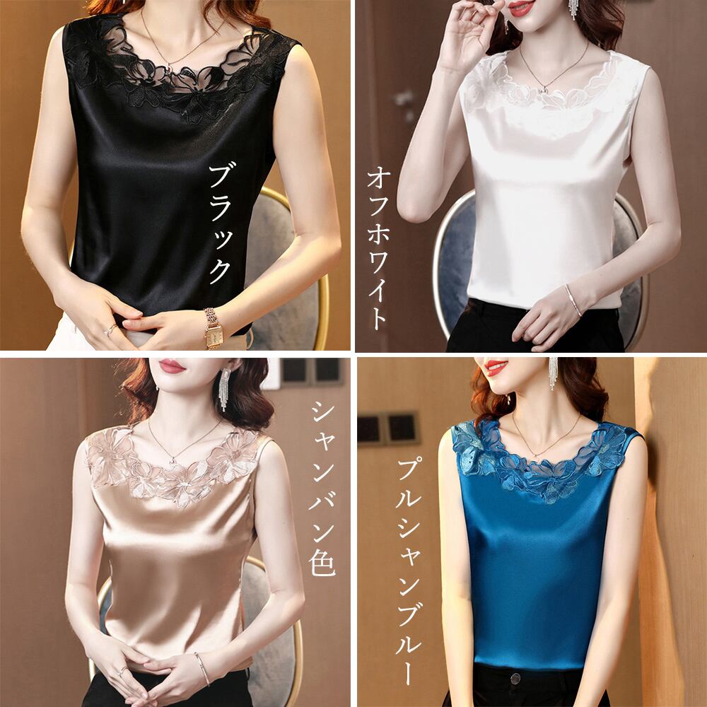 タンクトップ レース トップス 光沢感