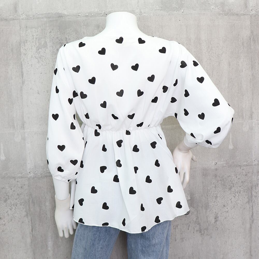フレアブラウス ハート柄 ぽっと袖 パフスリーブ シルエット 着やせ おしゃれ 大人 可愛い