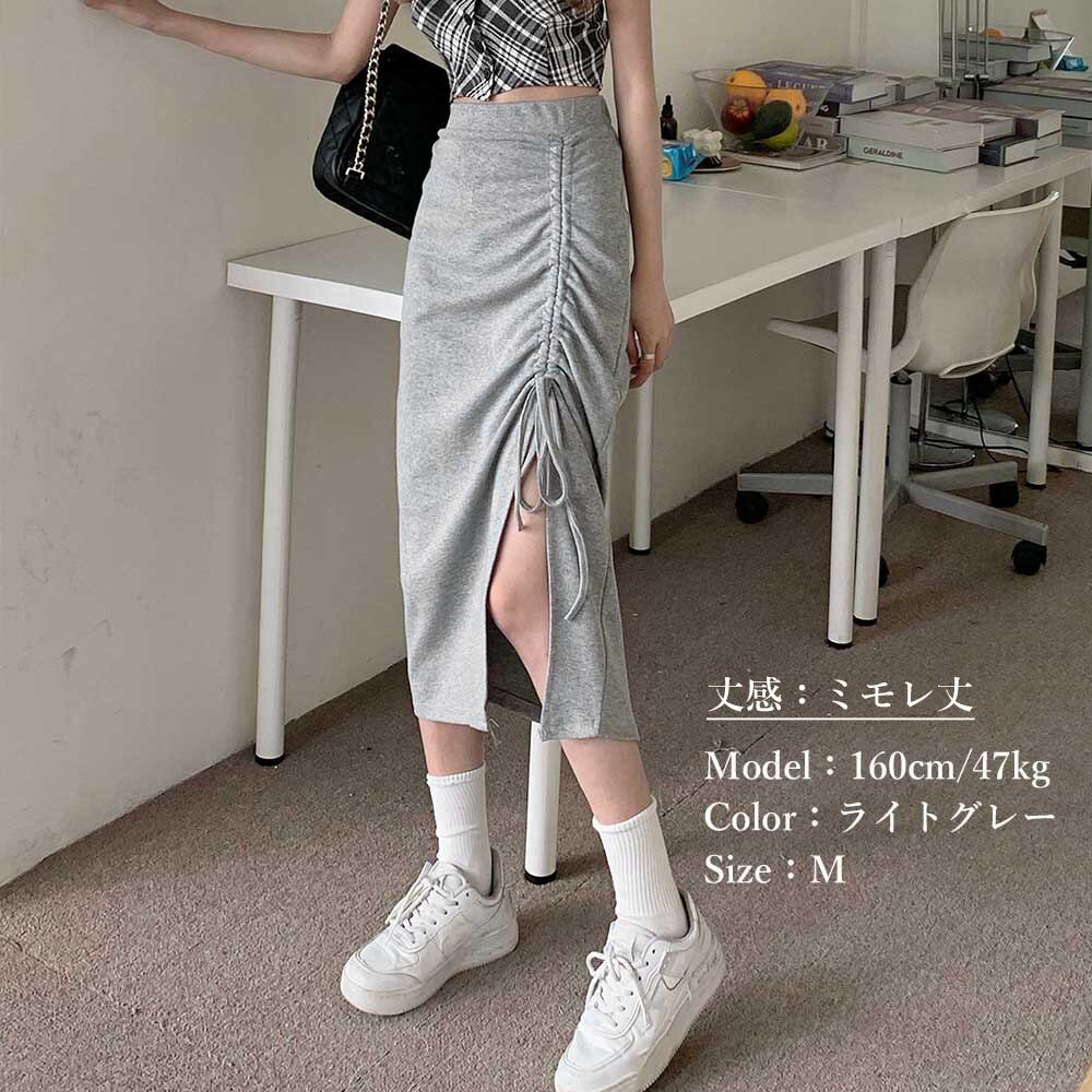 脚を長くキレイに見せてくれるデザインのスカートです。