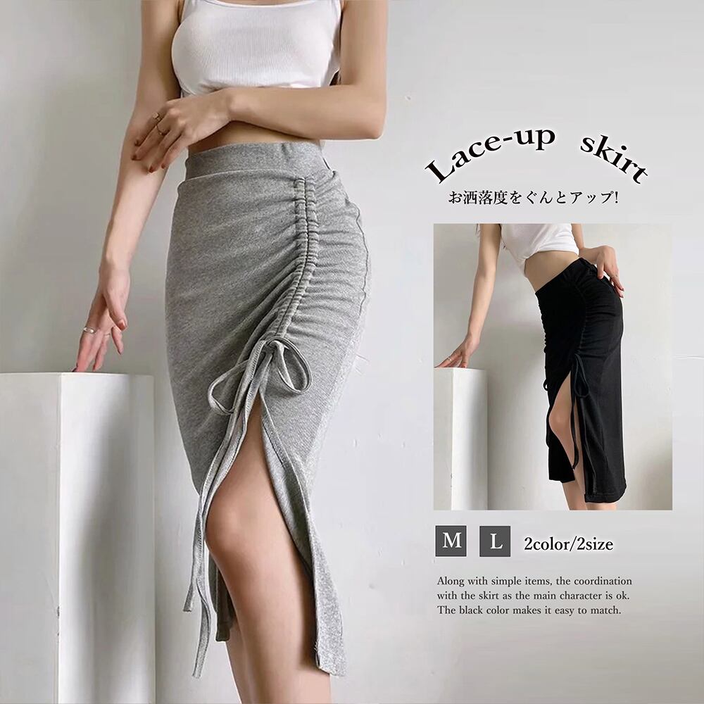 スカート黒ギャザー ボトムススプリング フェミニン通勤脚長