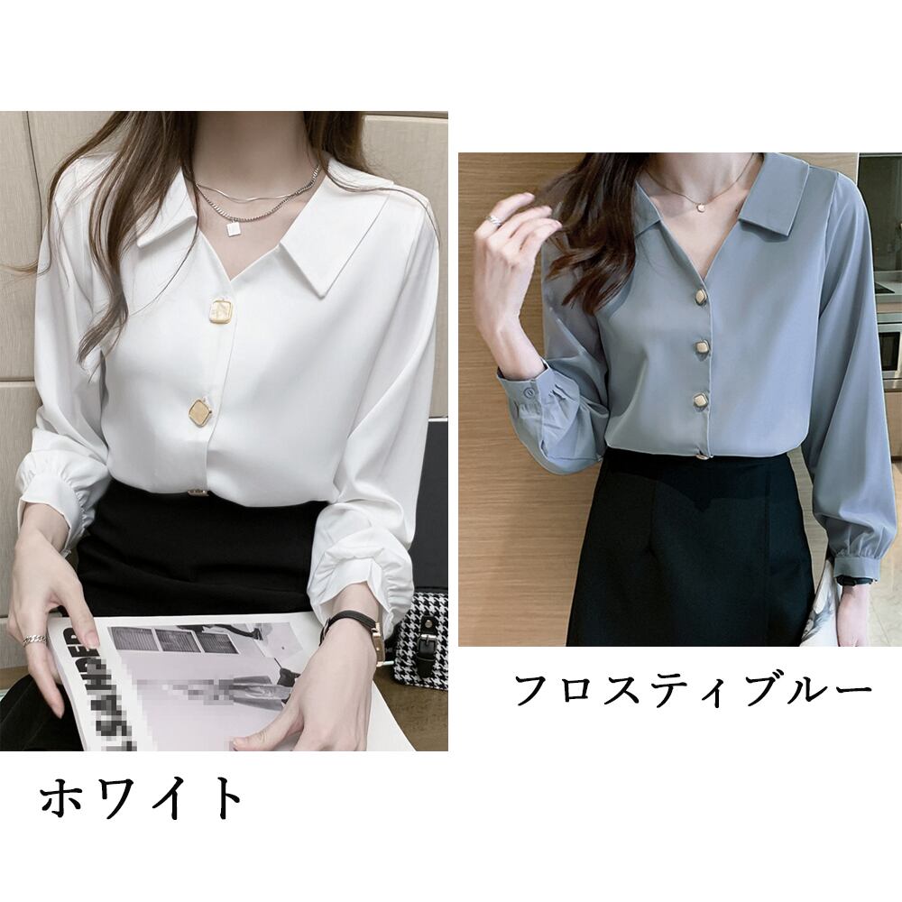 トップス フロントボタン 春秋夏 Vネックシャツ 通勤通学 フォーマル Yシャツ