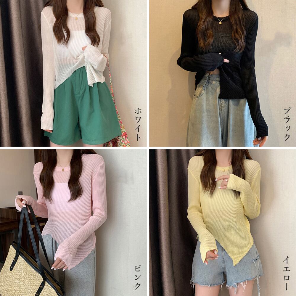 透け感 カットソー 長袖 涼しいトップ 冷房対策 ニット