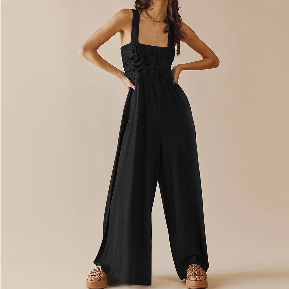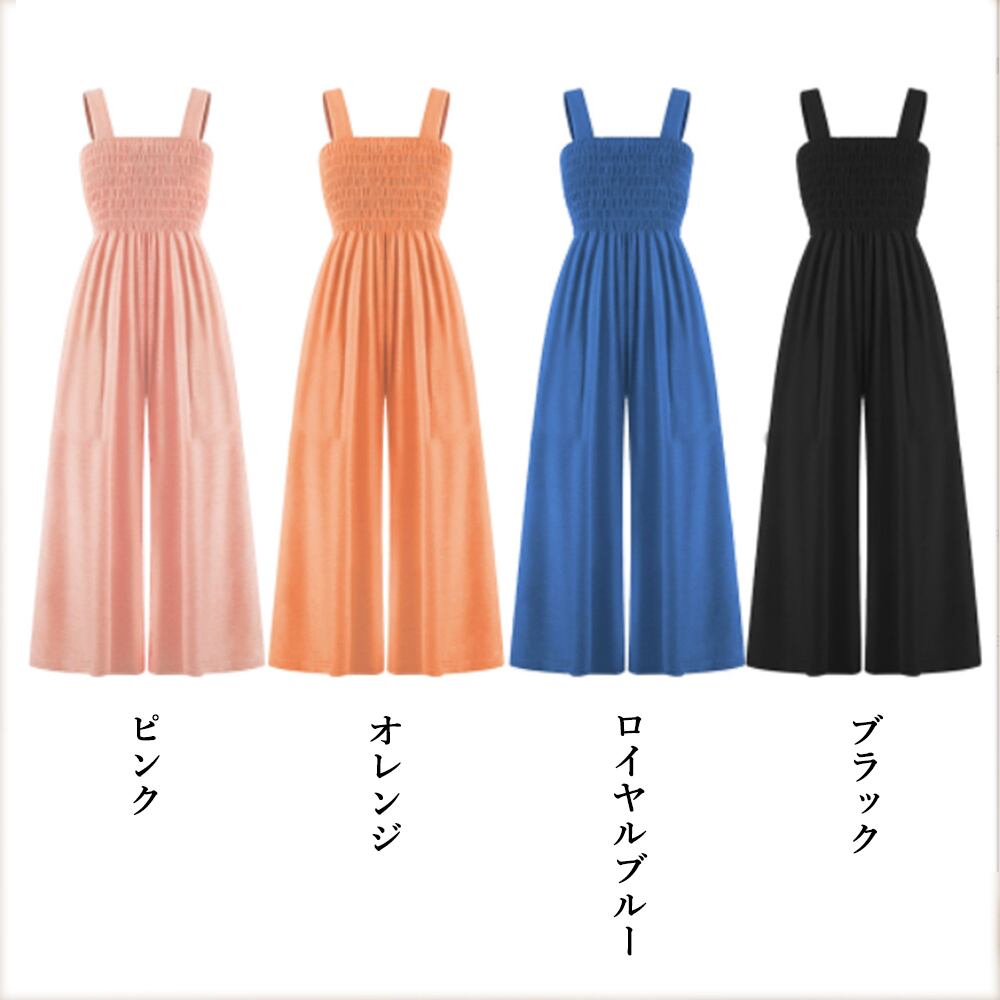 着やせ サロペット 無地 フレアパンツ リゾートワンピース