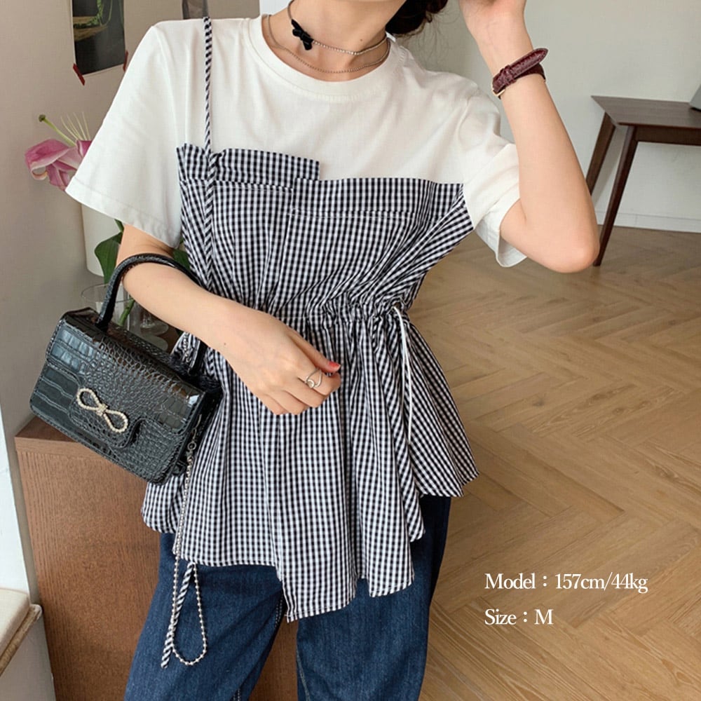 ブラウス 半袖 レディース ハイウエスト ドローストリング フレアシャツ 着やせ 体型カバー 服 30代 オフィス 女性