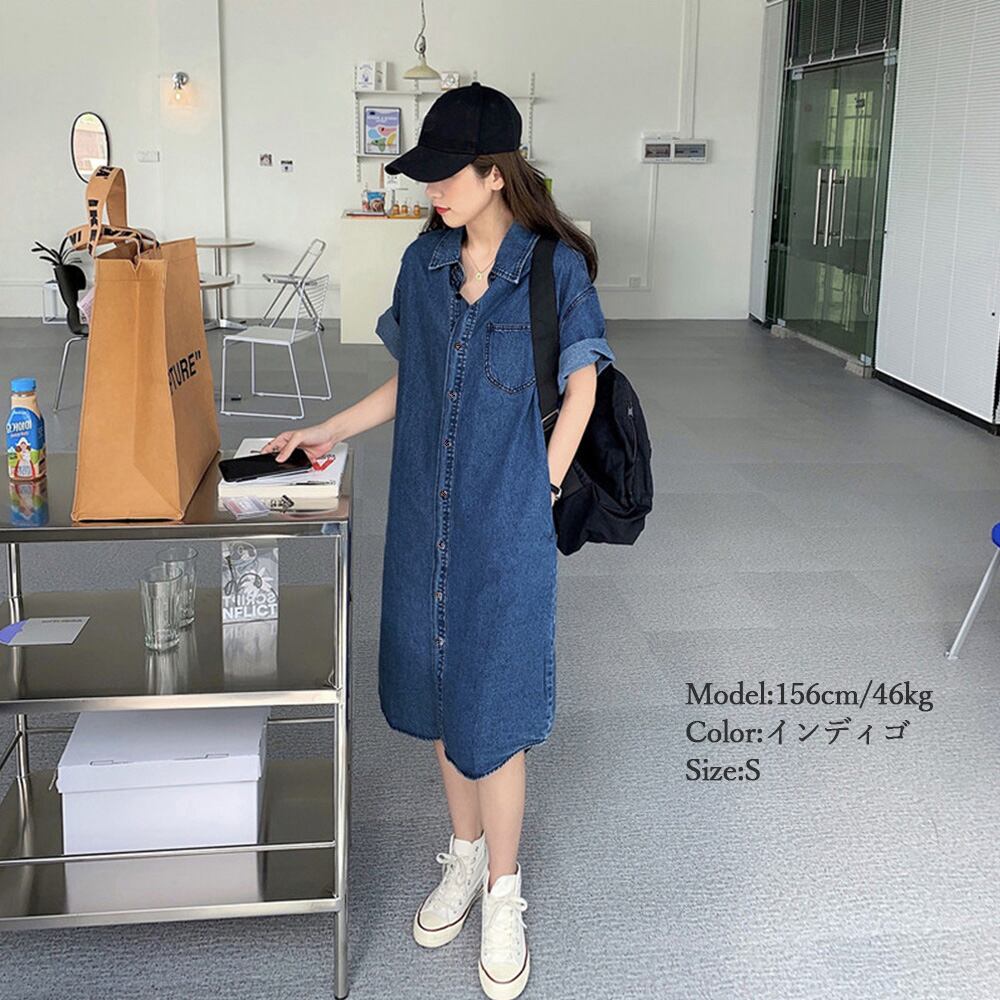 デニム シャツワンピース レディース半袖