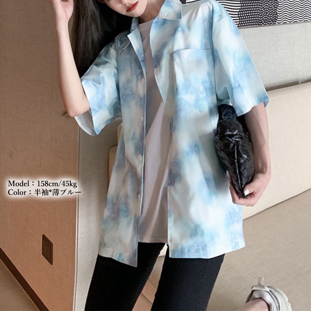 オーバーサイズ 半袖シャツ 絞り染め クールトップス ゆったり サマーカーディガン長袖 体型カバーシャツブラウス 羽織り