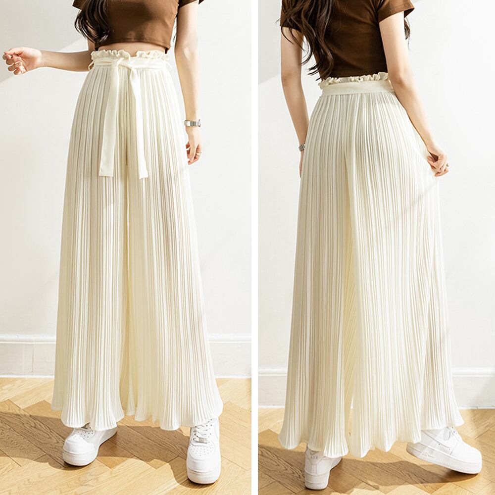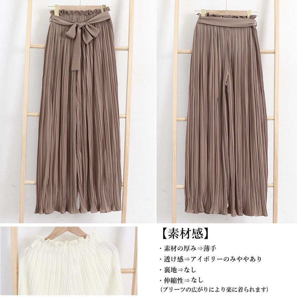 サラッと軽やかなシフォン素材がふわっと広がるプリーツワイドパンツ