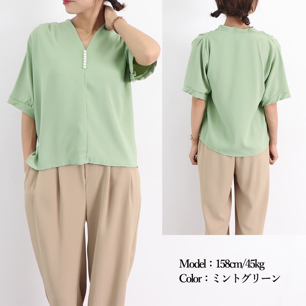 レディース きれいめ 半袖 上品ブラウス 大人女性 オフィスカジュアル トップス 薄手 シャツブラウス 通勤無地