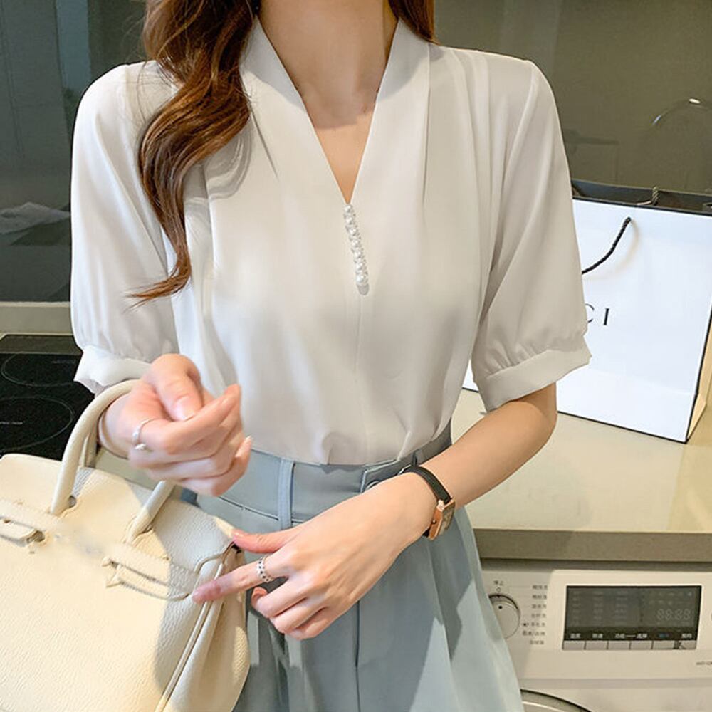 オフィス ブラウス シフォンブラウス夏 スッキパーシャツ白