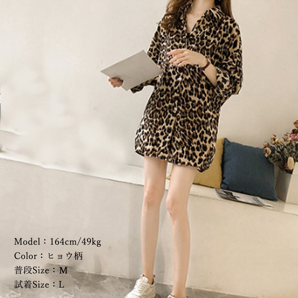 派手 シャツ 豹柄ブラウス アニマル柄ブラウス
