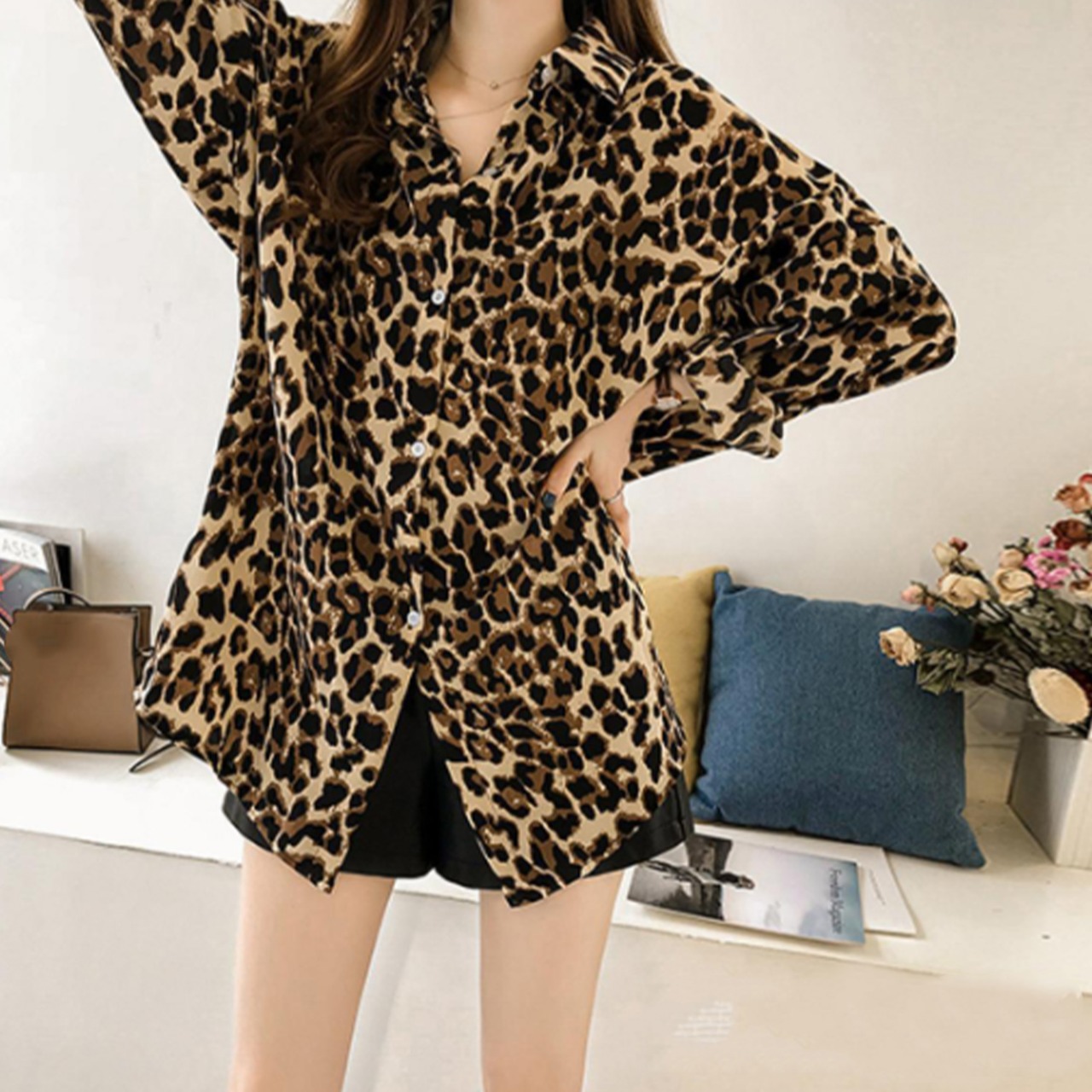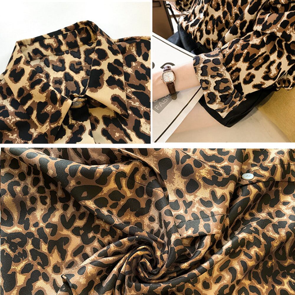 Vネック レオパード柄 シャツブラウス トップス 長袖 おしゃれ ロングシャツゆったり