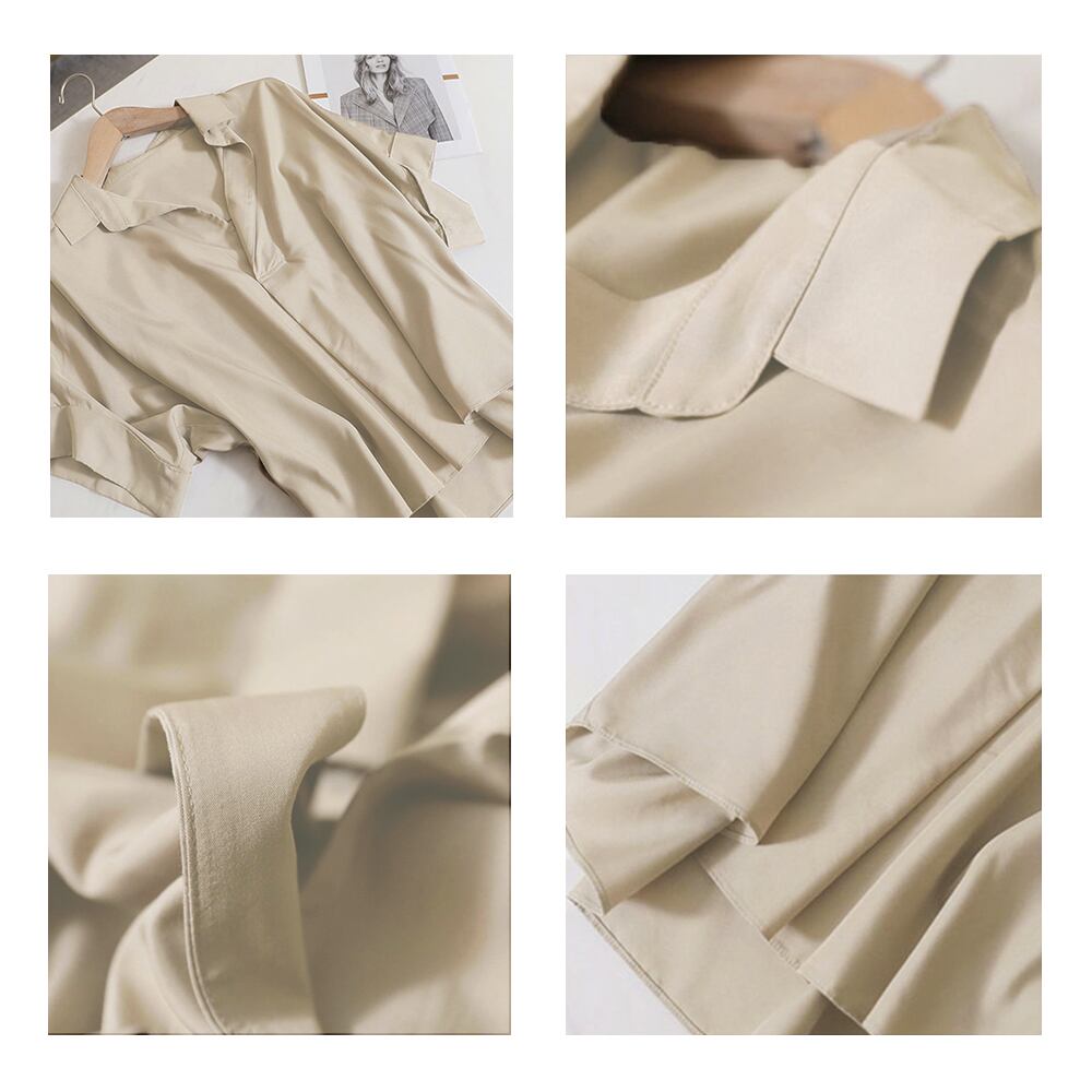 レディース オフィスカジュアル とろみブラウス 無地 薄手 きれいめ ドロップショルダーシャツ 体型カバー 大人春秋夏