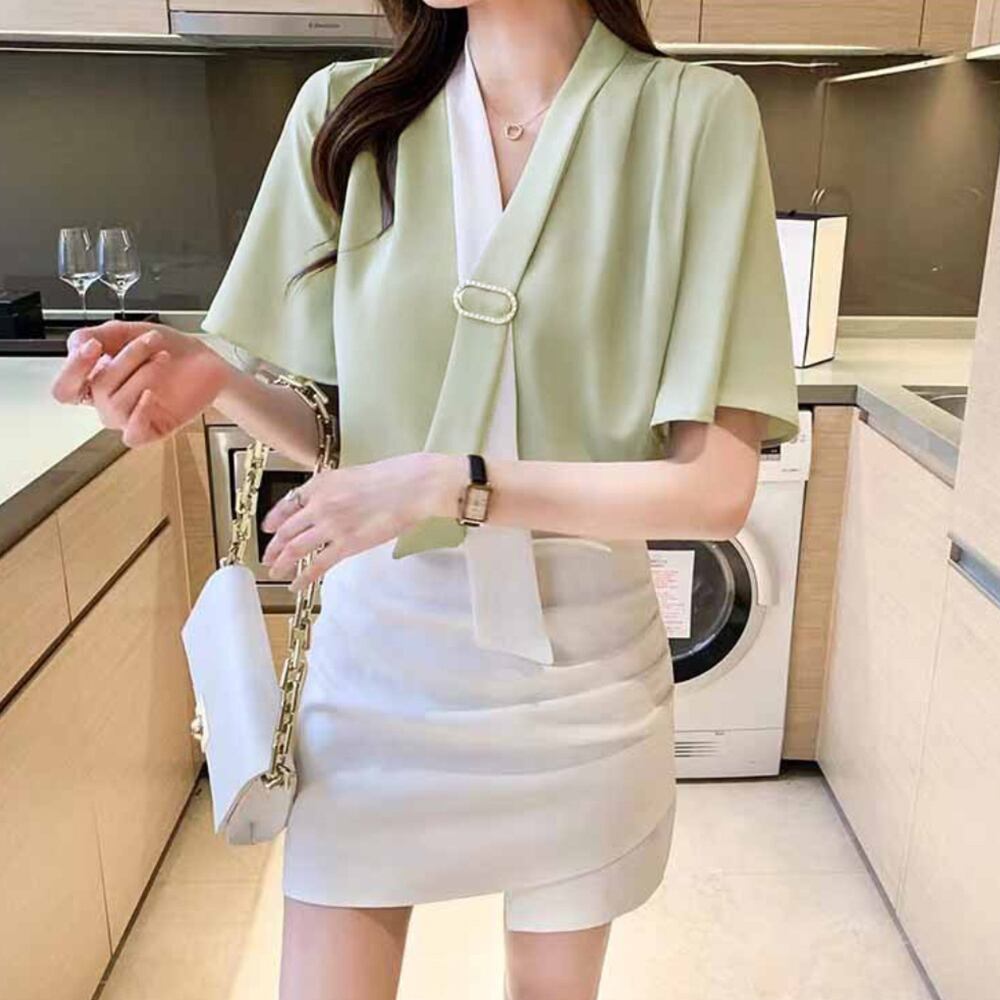 オフィスカジュアル シャツブラウス 大人女性 ゆったり とろみシャツ 通勤通学 薄手半袖ブラウス 20代 30代 40代