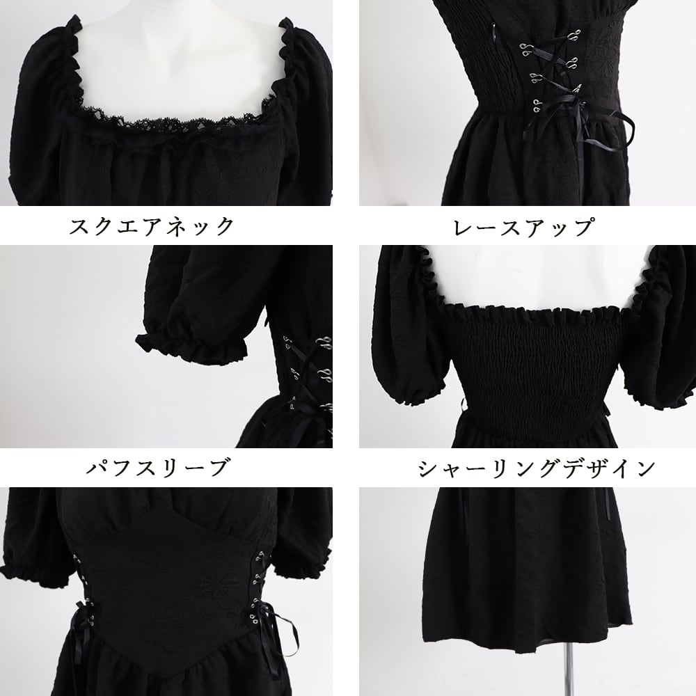 デコルテラインを美しく魅せるスクエアネックミニワンピース