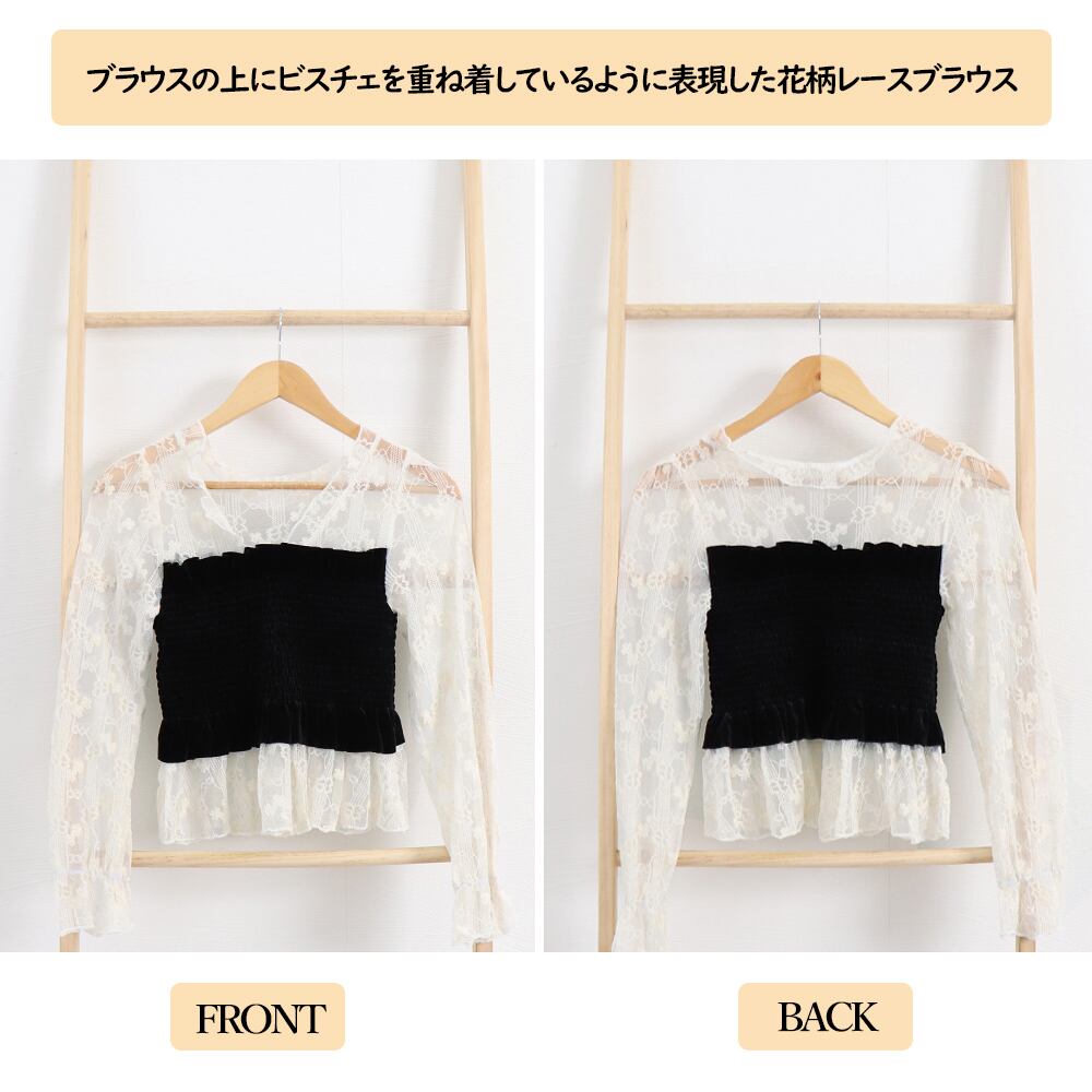 ブラウスの上にビスチェを重ね着しているように表現した花柄レースブラウス