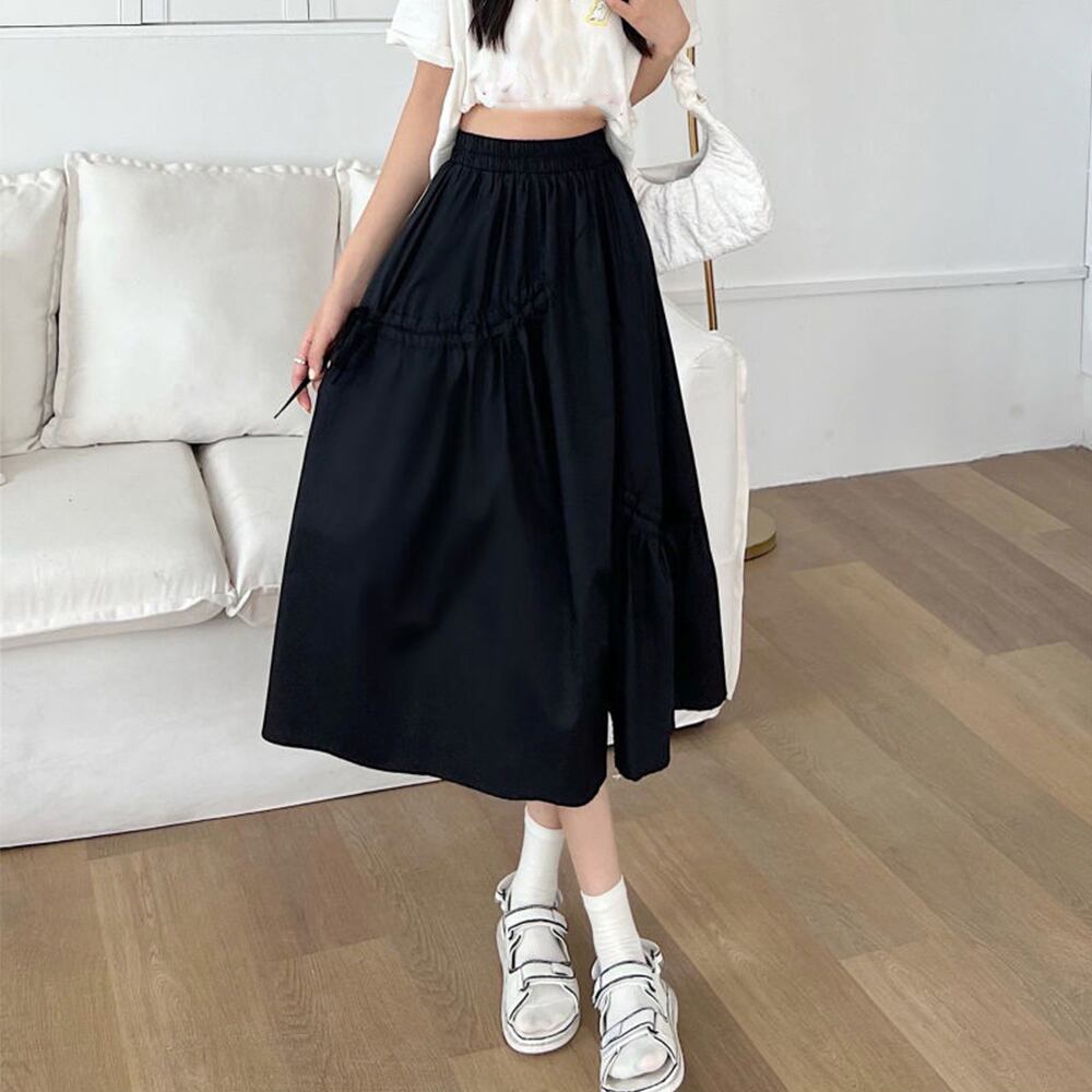 ハイウエスト フレアスカート ウエストゴムAラインスカート きれいめ 無地 ミモレ丈スカート 体型カバー ボトムス