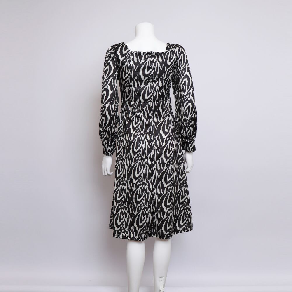 ゼブラ柄 長袖 スクエアネック ロングワンピース 春秋 きれいめ 着やせ オシャレ 女性 ハイウエスト リゾート