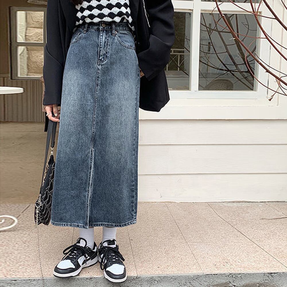 オシャレ レディース ハイウエスト ロングスカート 体型カバー カジュアル ジーンズ ミドル丈スカート 着やせ 春秋夏冬