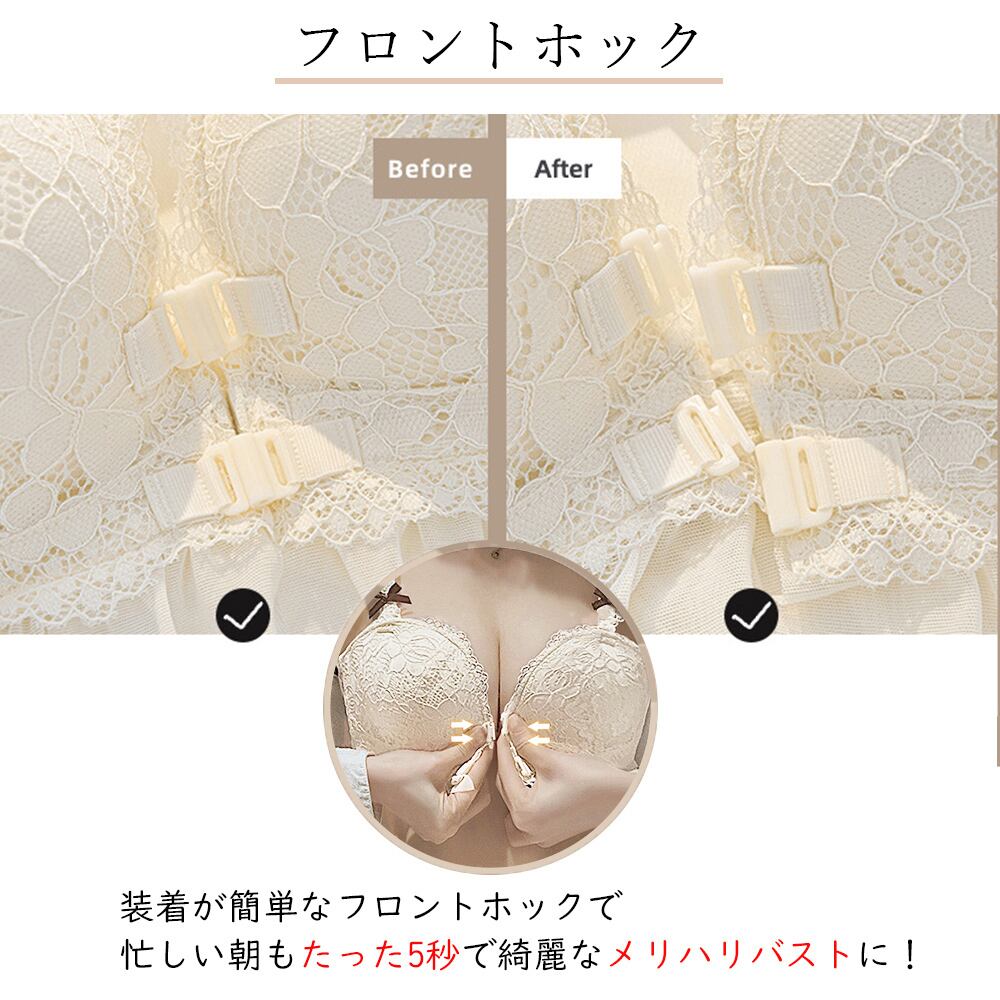 花柄刺しゅうレースランジェリーセット 肩リボン 胸元セクシー ブラジャー ショーツフェミニン 大人美胸 盛りブラ フリル