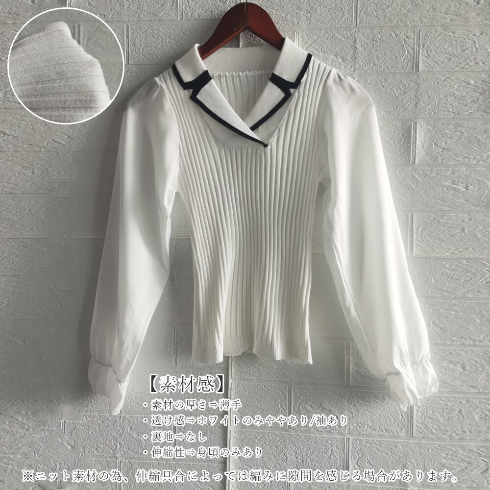 異素材のキャンディスリーブが女性らしさを際立たせる切り替えニットトップス