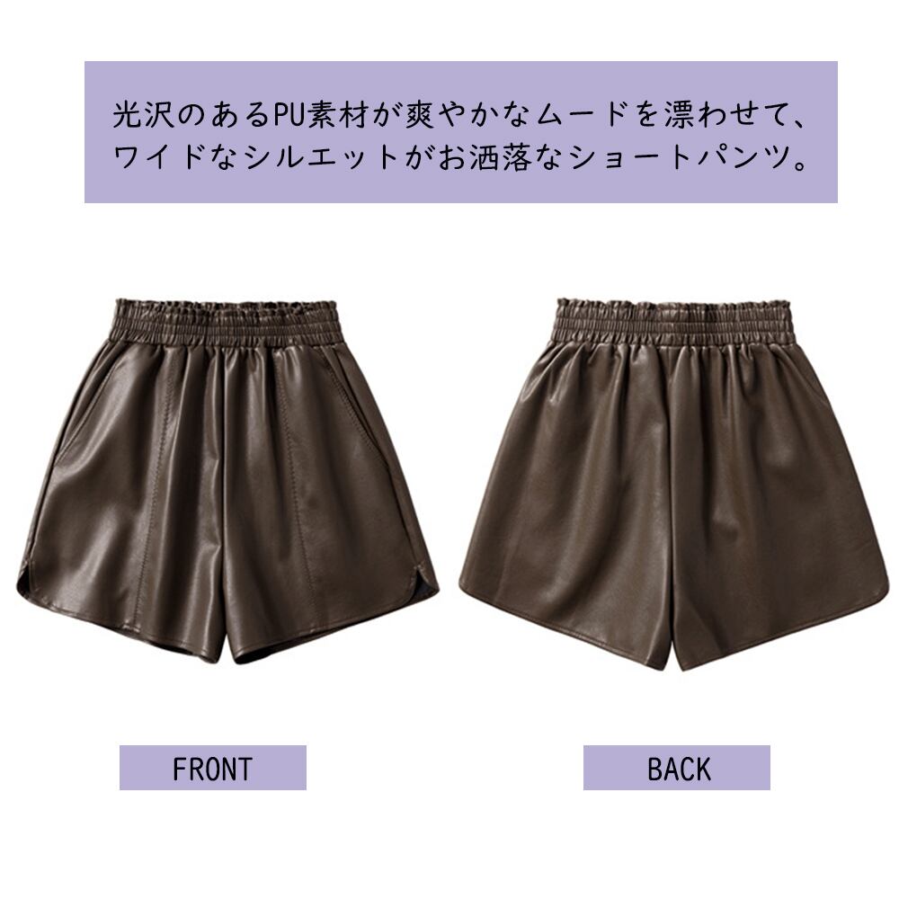 PUレザー ショートパンツ レディース